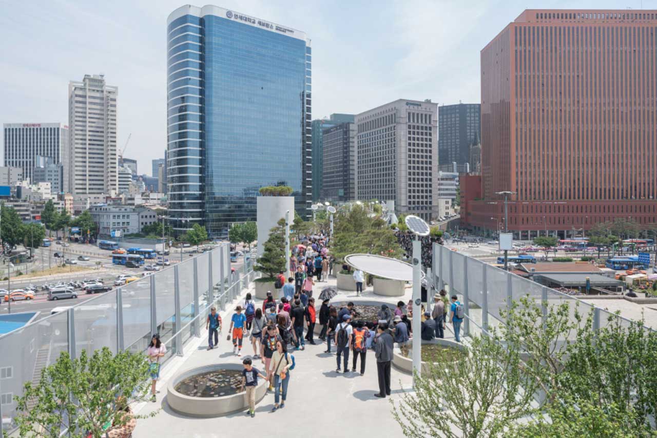 Seoullo 7017 đánh dấu sự chuyển đổi từ một đường cao tốc thành một ốc đảo dành cho người đi bộ ở giữa Seoul. Khách đến Seoullo 7017 có thể đi dạo thư giãn và ăn uống.